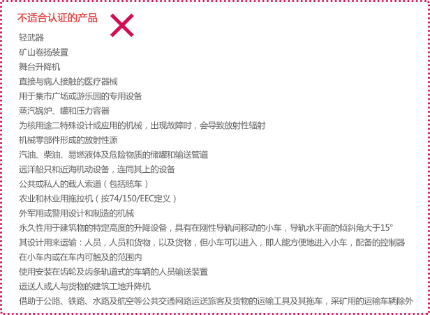 機械指令適用于各種機械產品以及在市場上銷售的安全零部件。包括機械指令中所述的單臺的機械、有聯系的一組機械和可更換設備。